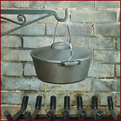 “From morning to night,” said Mademoiselle Ray, “my largest black iron ‘witch’s cauldron’ hangs from the hook above the huge log fire. We ladle the food out of it hour after hour. One day it might be filled with our Spécialité de la Maison, Le Hochepot de Poule du Prince d’Orange, made with chicken, veal, celery, leeks, onions and so on, gently simmering in veal stock and white wine. Or it might be a Mediterranean dish from my home, Les Pieds Paquets Marsellaise, with lambs’ feet and aromatic little packages of tripe bubbling in a bouillon. Or a pot roast of Boeuf à la Mode Marsellaise with blackberry brandy and olives. Or our Grande Spécialité, La Marmite de Lesdiguières, with every kind of meat, chicken and vegetables, and the sauce laced with Cognac.” [Note: This description concerns food fed to skiers staying at the Auberge.]