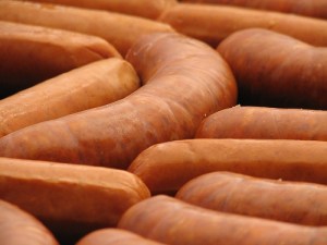 Mix together all ingredients. Stuff into sausage casing in one long sausage. Tie off the end. Hang to dry for one day, then refrigerate, loosely wrapped in wax paper. [Note: You’ll need to cook the sausage as with any fresh pork sausage.]