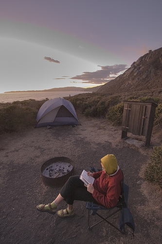 Camping trip = paperbacks, less weight.