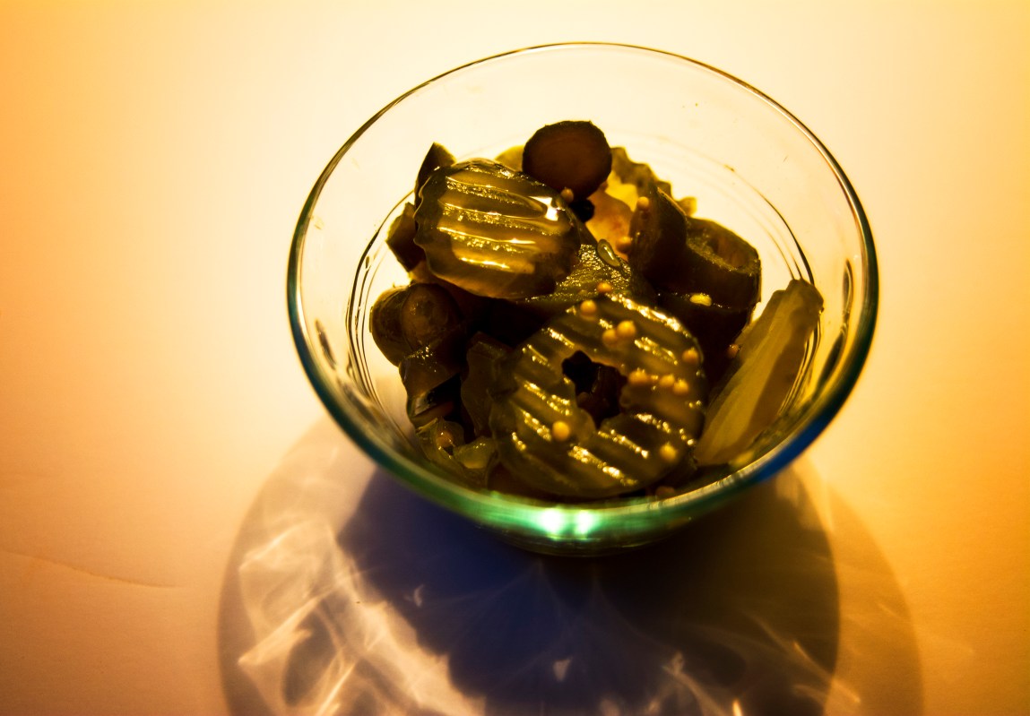 In this pickle you may put white cabbage cut in quarters, and put it in a brine of salt and water for three days; then boil fresh salt and water, and just put in the cabbage to scald ; press out the water, and put it in the sun to dry, in the same manner you must do cauliflowers, cucumbers, melons, apples, French beans, plums, or any sort of fruit; but take care they are well dried before you put them into this pickle. You need never empty the jar, but as the pickles are in season; put them in, and supply them with vinegar as often as there is occasion: If you would have your pickle look green, leave out the turmeric, colour [Glasse says “green” instead of “colour”] them as usual, and put them into this pickle cold. In the above you may pickle walnuts in a jar by themselves: put the walnuts in without any preparation, tied close down, and kept some time.