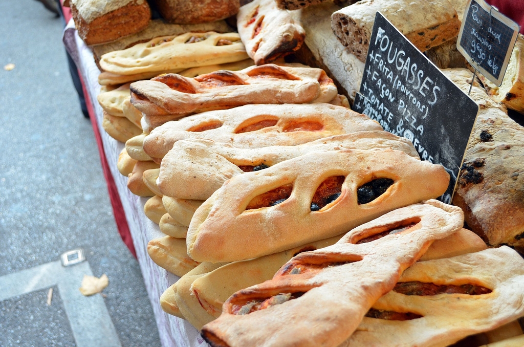 “Fougasse” stems etymologically from the ancient Roman panis focacius cooked in the ashes of wood fires, Latin for hearth being “focus.” I find it logical that later these flat loaves served as “testers” for the temperature of wood-burning ovens, as some have suggested. The slashes helped to increase the surface area of the bread and ensure crispier, faster-cooking loaves.