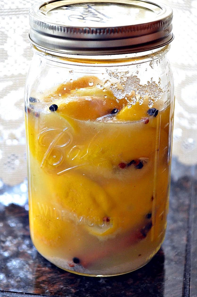 Lemons, being rich in the anti-scorbutic vitamin C, may even carry this vitamin level over to pickled lemons, a term which more or less describes preserved lemons, because they are similar in concept to the lemon pickle of India. Heat denatures vitamin C, but since you’re not doing any cooking when you make preserved lemons, it is likely that preserved lemons render up a significant amount of vitamin C. Studies show that vitamin C levels of citrus peel is quite high,* though generally this is not available to you because, if you’re like me, you usually toss in the garbage, along with the seeds.