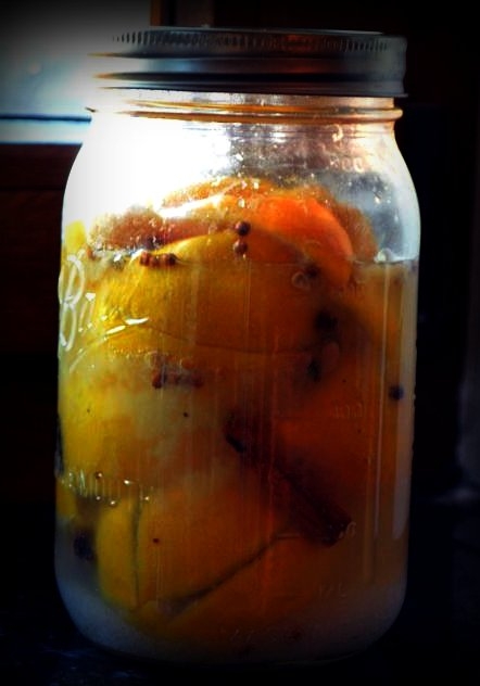 Take a sterilized jar with a tight-filling lid, also sterilized. Wash and dry your Meyer lemons (you can use regular lemons, but the taste won’t be as nice); snip off the stem end to remove the remnants of the stem, turn the lemon to the other end and make deep cuts down toward the stem end, like you’re cutting a cross into the end of the lemon. Rub about a tablespoon of Kosher salt into cut and stuff the lemon into the jar. Repeat with all your lemons, pushing the lemons down to extract juice. sprinkle in another couple of tablespoons of salt and if you wish some black peppercorns, a cinnamon stick, some coriander seeds, and a bay leaf. You may have add some freshly squeezed lemon juice to cover the lemons, but they keep popping up, so it’s hard to tell how much to add. More is better than less. Seal the jar and let the lemons sit over night on the kitchen counter. The next day, press the lemons down again. Repeat the next day if necessary. Then just leave them to sit for about a month. To use, cut away the pulp and use the softened rind. Refrigerate the lemons at this point.