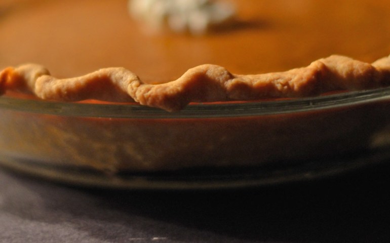 I don’t know about you, but I nearly swoon when I catch a whiff of Saigon cinnamon. I try to restrain myself and not dump too much to the custard. The rich aroma of freshly grated nutmeg pump up the flavor of the pie, too, not to mention cloves and ginger. The medieval overlay of these spices causes me to think about the ties to my own cultural past. Because of that, I strongly associate autumn with the aroma of these spices.