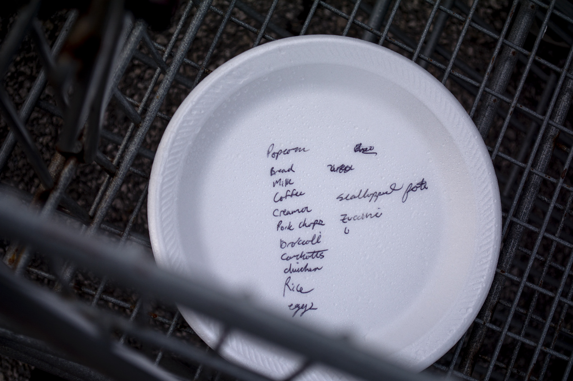 A grocery list, written on a Styrofoam plate, of all things. We don’t really need apps, do we?