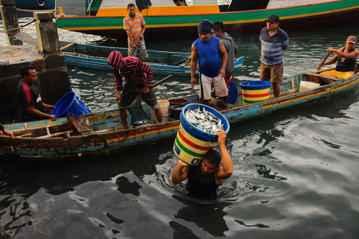 As he approached the top step, he swung the bucket down as the market vendor reached for it, a crumpled 5000 rupiahs (50 cents in USD) note gripped in his right hand. The man took the money and then thrust a hand into the bucket, pulling out a few slippery fish, which he tossed down next to his flip-flops.