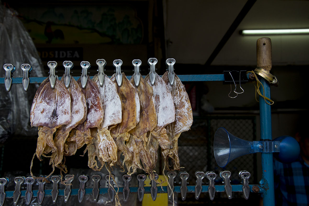 Also, if you can tell me anything else about the photo, that might make the caption more interesting (Bangkok? open-air market? how the dried squid would be used? — that sort of thing).