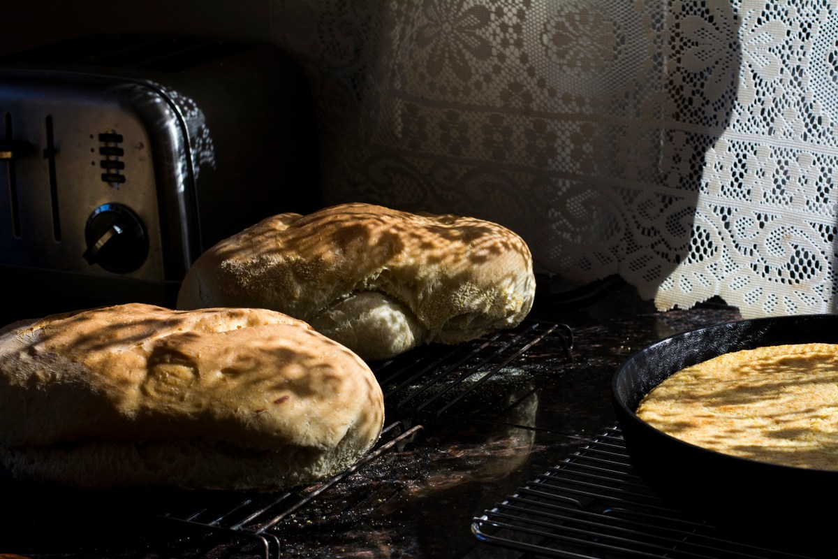 The photo above portrays two traditions of early America: wheat bread and cornbread. Both originated in what is known as “farce,” “forcemeat,” “stuffing,” and “dressing.”