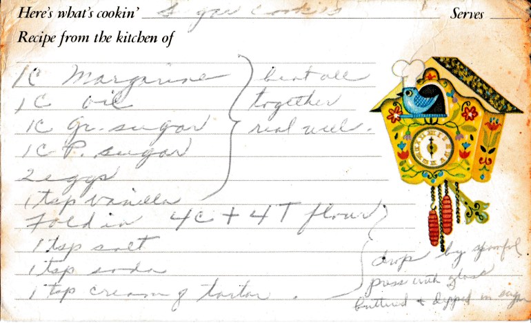An email notice popped up on the computer screen when I returned. A sister-in-law wanted me to scan our mother-in-law’s recipe for sugar cookies, so I did.