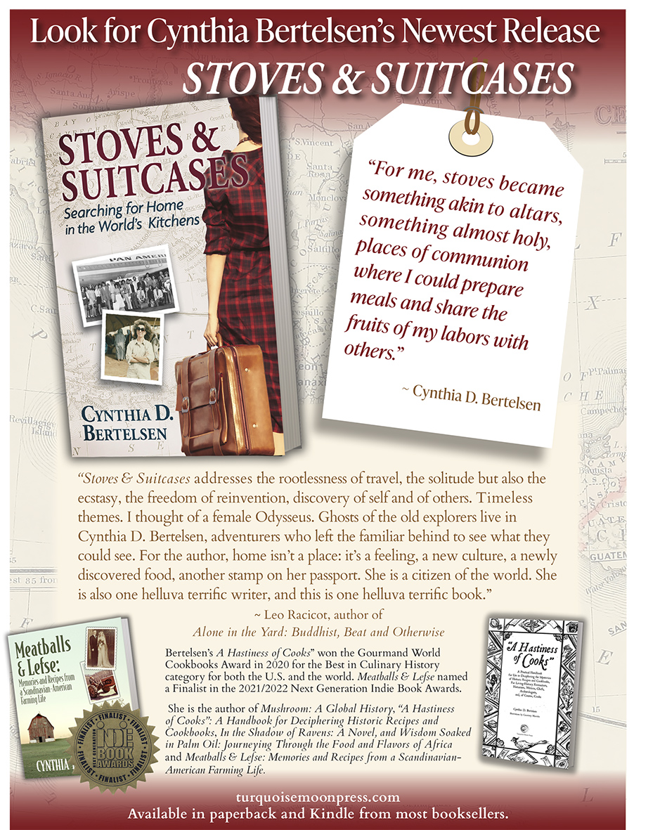 Stoves & Suitcases: Searching for Home in the World’s Kitchens September 18, 2021April 19, 2023 Written by Cynthia D. Bertelsen My latest book is out, a story of culinary discoveries and life’s big-and-little adventures. Related