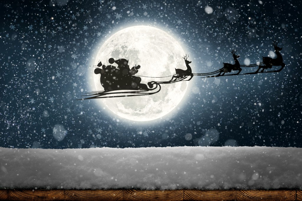 He flies through the night sky with the greatest of ease, in his reindeer-drawn sleigh. He knows where I live, the white house on the two hills. He leaves presents under the Christmas tree (even though there’s no chimney in my house!). And he eats the sparkly sugar cookies and drinks cold chocolate milk on the coffee table. It’s magic!