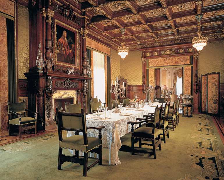 The State Dining Room in Warwick Castle, England, inspired the breakfast room at Whitehall.