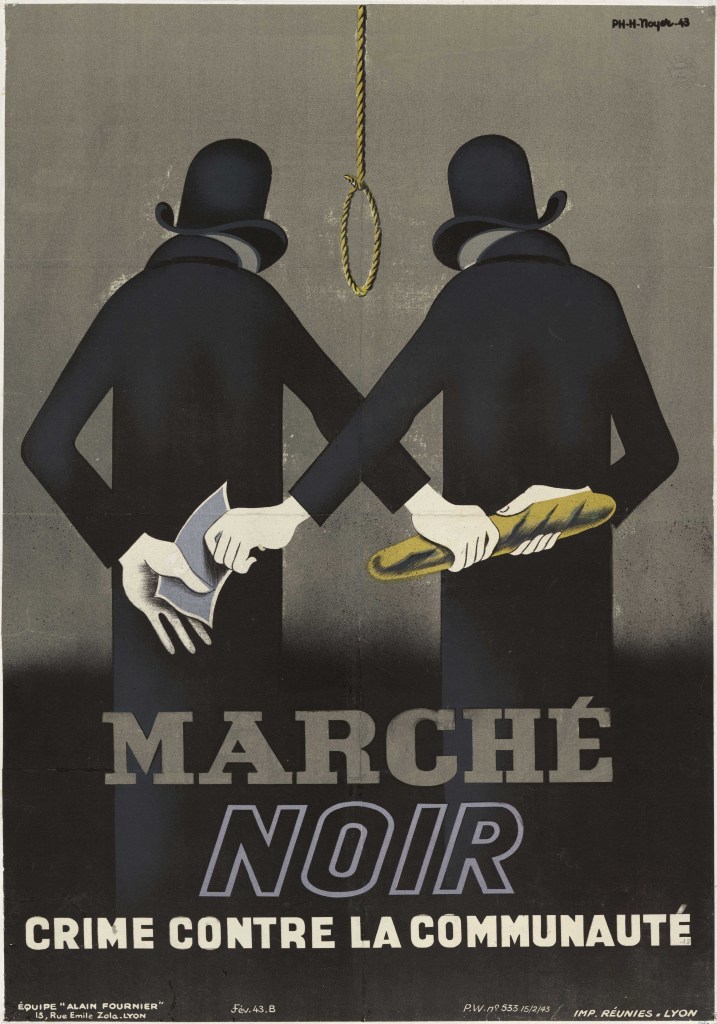 Kenneth Mouré’s Marché Noir: The Economy of Survival in Second World War France examines the black market in France during the war. With brief quotes about food shortages, queuing for a limp carrot or moldy potatoes, and the struggle to keep ration coupons safe, Mouré’s book paints a precisely researched chronicle of the black market in France, ostensibly a crime with severe repercussions for those engaging in subterfuge.