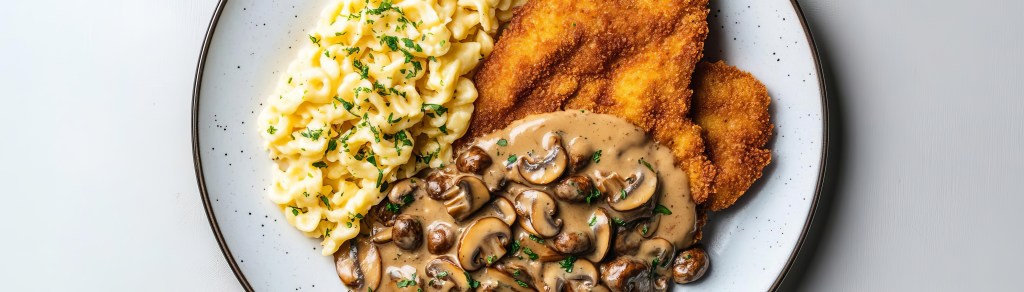 *Originally called Zigeunersoße, or Gypsy Sauce, now considered to be a derogatory term. Hungarian Sauce is another way it’s described. Some recipes call for lemon juice or vinegar. I think the chef at the restaurant in Palm Coast added a bit of Brown Sauce instead of chicken stock and no tomato paste.