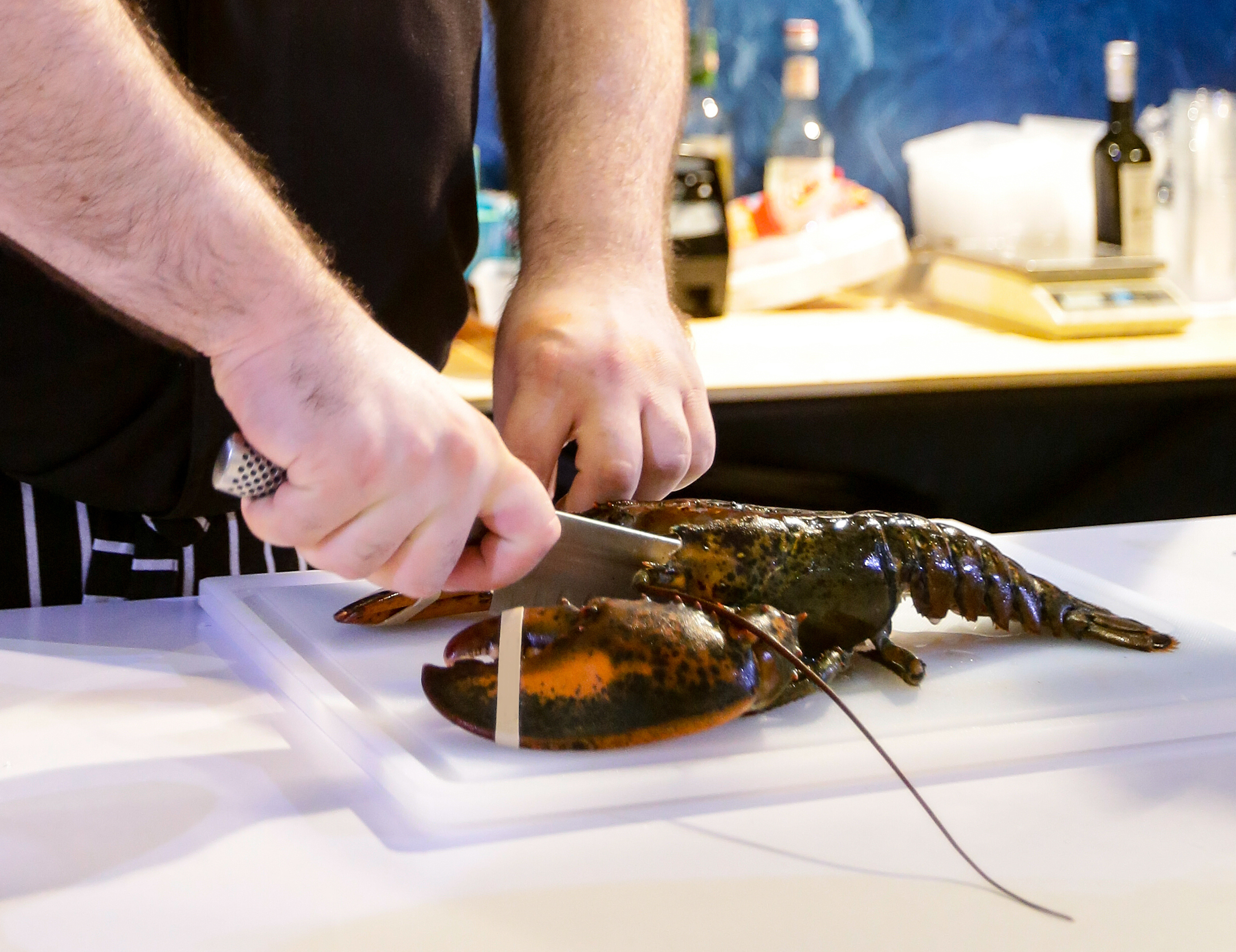Cooking Lobster, chef cutting lobster, Hands of a chef cutting a 0 November 5, 2021 Written by Cynthia D. Bertelsen